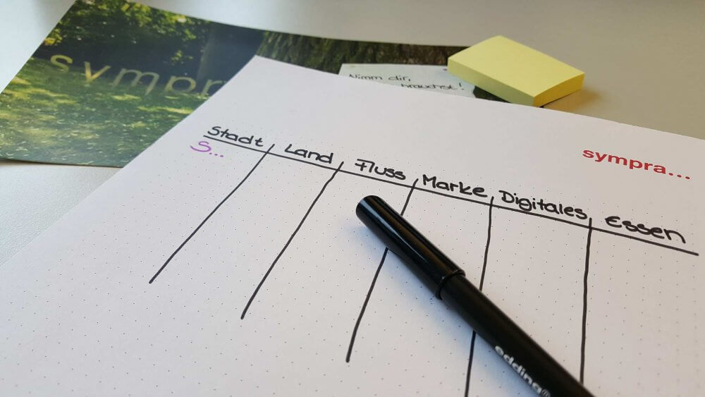„Stadt-Land-Fluss“, der Klassiker unter den Wissensspielen, läuft heute als App auf dem Handy. In meiner Jugend spielten wir das noch mit Papier und Bleistift. Erstaunlicherweise sind die Inhalte dieselben wie vor Jahrzehnten: Geografie, Namen, Farben, Tiere, Berufe. Zur Onlineversion würde eigentlich die Rubrik „Digitales“ passen. Bei der Probe aufs Exempel fiel mir zu jedem Buchstaben ein passender Begriff aus der digitalen Welt ein, nur X, Y und Z bleiben genauso knifflig, wie zu Zeiten von Papier und Bleistift.