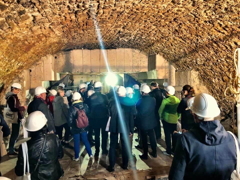 Seit Juli und bis 2023 ist das Stadtschloss Weimar wegen Sanierung geschlossen. Hier werden künftig verschiedene Kunstmuseen untergebracht sein, wobei der Zugang durch das Untergeschoss erfolgen wird. Und genau dieses haben wir uns angeschaut: ein Labyrinth von Gängen und Räumen, Gewölben und Treppen. Im Laufe der Jahrhunderte wurden die Böden immer wieder mal aufgeschüttet oder abgetragen, sodass es Höhenunterschiede von gut einem Meter gibt. Regelmäßig entdecken die Archäologen neue Steinböden. Im Dritten Reich wurde in den tiefsten Gewölbekeller ein riesiger Bunker einbetoniert. Zurzeit sind die Bauarbeiter damit beschäftigt, diesen Stück für Stück auszubauen. Die meterdicke Decke wird mithilfe von Seilen zerschnitten, über Hubbühnen herabgelassen und über Rampen ins Freie transportiert. Der Rückbau dürfte ein Vielfaches der damaligen Bauzeit und der Baukosten betragen.