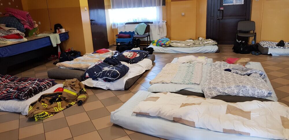 Jede Menge helfende Hände. An „unserer“ Grenze in Dolhobyzow vollbringt die Feuerwehr logistische Meisterleistungen. Die von den freiwilligen Helfern erstversorgten Menschen werden in einem Shuttle-Service von der Grenze in so genannte Sleeping Houses gebracht, umgerüstete Stadt- und Sporthallen, Feuerwehrhäuser usw. Dort werden sie registriert, können zur Ruhe kommen, Ehrenamtliche aus den jeweiligen Ortschaften sorgen für regelmäßige Mahlzeiten – oft, so berichten es uns die Helfer dort, der Moment, an dem viele erst einmal zusammenbrechen. Und entscheiden müssen: Bleiben, oder einen der Shuttle-Dienste in die großen Städte in Anspruch nehmen?