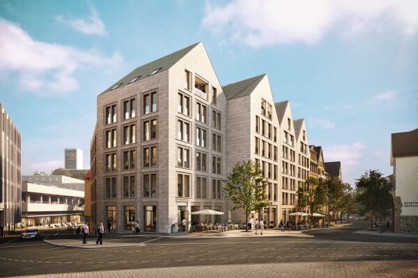 Mitten in der Stuttgarter Innenstadt entsteht gerade entlang der Eberhardstraße 18 bis 22 ein attraktives Gebäudeensemble. Das Wohn- und Geschäftshaus „Vier Giebel“ zeichnet sich architektonisch durch seine markante Giebeldachstruktur sowie die detailreiche Natursteinfassade aus und vereint historischen Charme mit der nachhaltigen Bauweise und der Modernität eines Neubaus. Durch die neu gedachte Interpretation Stuttgarter Altstadthäuser fügt sich das Vier Giebel harmonisch in den städtebaulichen Zusammenhang ein und trägt mit seiner vielfältigen Nutzungsmöglichkeit zu einer lebenswerten Gestaltung des gesamten Quartiers bei. Die LBBW Immobilien-Gruppe, das Immobilien-Kompetenzzentrum im Konzernverbund der Landesbank Baden-Württemberg, hat uns mit der kommunikativen Begleitung des Projekts beauftragt. Wir sind für die kontinuierliche Medienarbeit rund um das Projekt sowie die Neighborhood Relations zuständig und erstellen aktuellen Content für die Website www.viergiebel.de, um die Nachbarschaft und potenzielle Mieter der Wohn- und Gewerbeflächen über den Baufortschritt zu informieren.