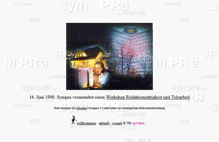 Websites oder Social-Media-Kanäle sind der erste Weg, den wohl jeder von uns einschlägt, wenn es um Informationen zu irgendwemoderirgendwas geht. Unsere www.sympra.de ist in ihrer aktuellen Version nicht nur ganz besonders schön, sondern auch schon ein echtes Urgestein. Um genau zu sein: 20 Jahre alt!