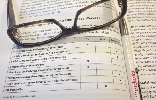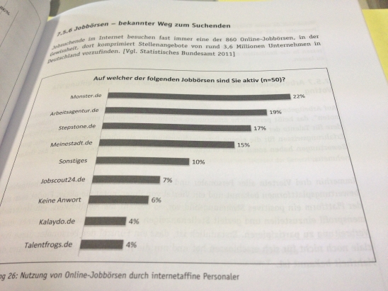 Mit dem Kapitel “Orientierung tut not! Talent Recruiting-Maßnahmen auf dem Prüfstand” von Salmen und Bieber, nähere ich mich den 200 Seiten und bin ein bisschen stolz auf mich. Aber das Kapitel ist ganz schön happig: ein Diagramm jagt das nächste, Zitate aus Studien und Fragebögen inklusive. Dennoch finden sich hier Empfehlungen, wie ein Unternehmen den “War for Talent” im Social Web gewinnen können: mithilfe von Unternehmensbotschaftern, der richtigen Instrumentenauswahl und einer guten Strategie.