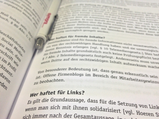 Klaus Karl Blükle macht direkt weiter mit Superbeispielen in ” Vorsicht Falle – Juristische Stolpersteine im Web 2.0″. Den Überblick zu behalten ist hier nicht immer leicht, doch Blükle hat alle aktuellen Diskussionen im Blick: Sei es Datenschutz bei Google Analytics oder Facebook-Plugins oder das Speichern von Bewerberdaten. Fragen wie: Darf ich Mitarbeiter abwerben? Darf ich über Social-Media-Plattformen Bewerber kontaktieren? beantwortet derRechtsanwalt fundiert und leicht verständlich. Auch auf die Pflichtangaben und Haftung für Inhalte geht er ausführlich und mit Beispielen ein. Schönes Kapitel, um sich einen Überblick zu verschaffen.
