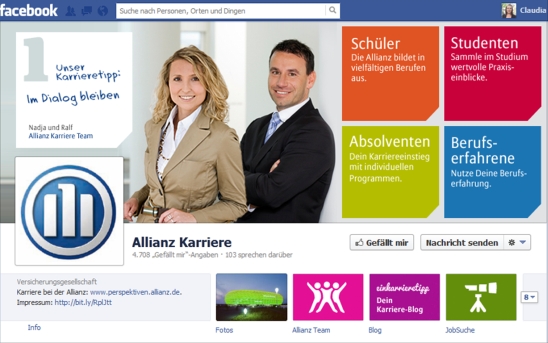 Dominik A. Hahn und Ralf Hilscher geben “Einblicke in das Allianz-Social-Media-Personalmarketing” das sich auf 3 Säulen stützt: 1. Zielgruppe kennenlernen und einbeziehen 2. Content mit Mehrwert anbieten 3. Eine Community potenzieller Bewerber aufbauen. Durch authentische Kommunikation als Markenstrategie hat die Allianz es so geschafft mit der “One Advice” -Kampagne erfolgreich ein Blog und Facebook zu betreiben. Ein wichtiges Element bildet dabei auch Social-Media-Controlling, um die Erfolge messen zu können.