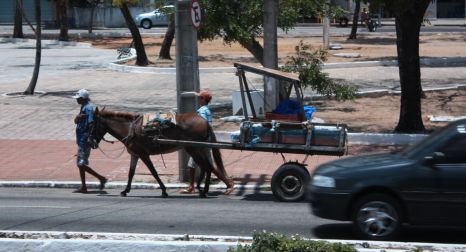 Gerade in Fortaleza, das in einer der Regionen mit recht hoher Kriminalitätsrate liegt, täuscht der Frieden zuweilen. Die Fenster der meisten Häuser sind mindestens bis zum ersten Stock vergittert. Die Häuser sind mit Mauern umgeben, die oben mit Glasscherben, Bewegungsmeldern und Elektrozäunen versehen sind. Wachtürme an den Eingangstoren vieler Häuser zeigen einem zusätzlich, wie es um die Sicherheit in dieser Region bestellt ist. Selbstredend, dass einem davon abgeraten wird, nach Einbruch der Dämmerung die beleuchtete und belebte Strandpromenade zu verlassen und ans Meer zu laufen. Am deutlichsten wurde dies an unserem ersten Abend in Fortaleza, den wir in einem Strandclub verbrachten. Zwar konnten wir uns innerhalb des Geländes frei bewegen, doch waren wir umgeben von bewaffneten Wachleuten (und damit meine ich nicht nur eine „kleine“ Pistole, sondern eher größere Kaliber). Diese patrouillierten mit Taschenlampen den Strand und eskortierten uns zum Bus, da die Gegend drum herum wohl nicht so sicher ist. Dieser Eindruck wurde nochmals verstärkt, als sich ein anderer Busfahrer am nächsten Wochenende weigerte, zu diesem Strand zu fahren.