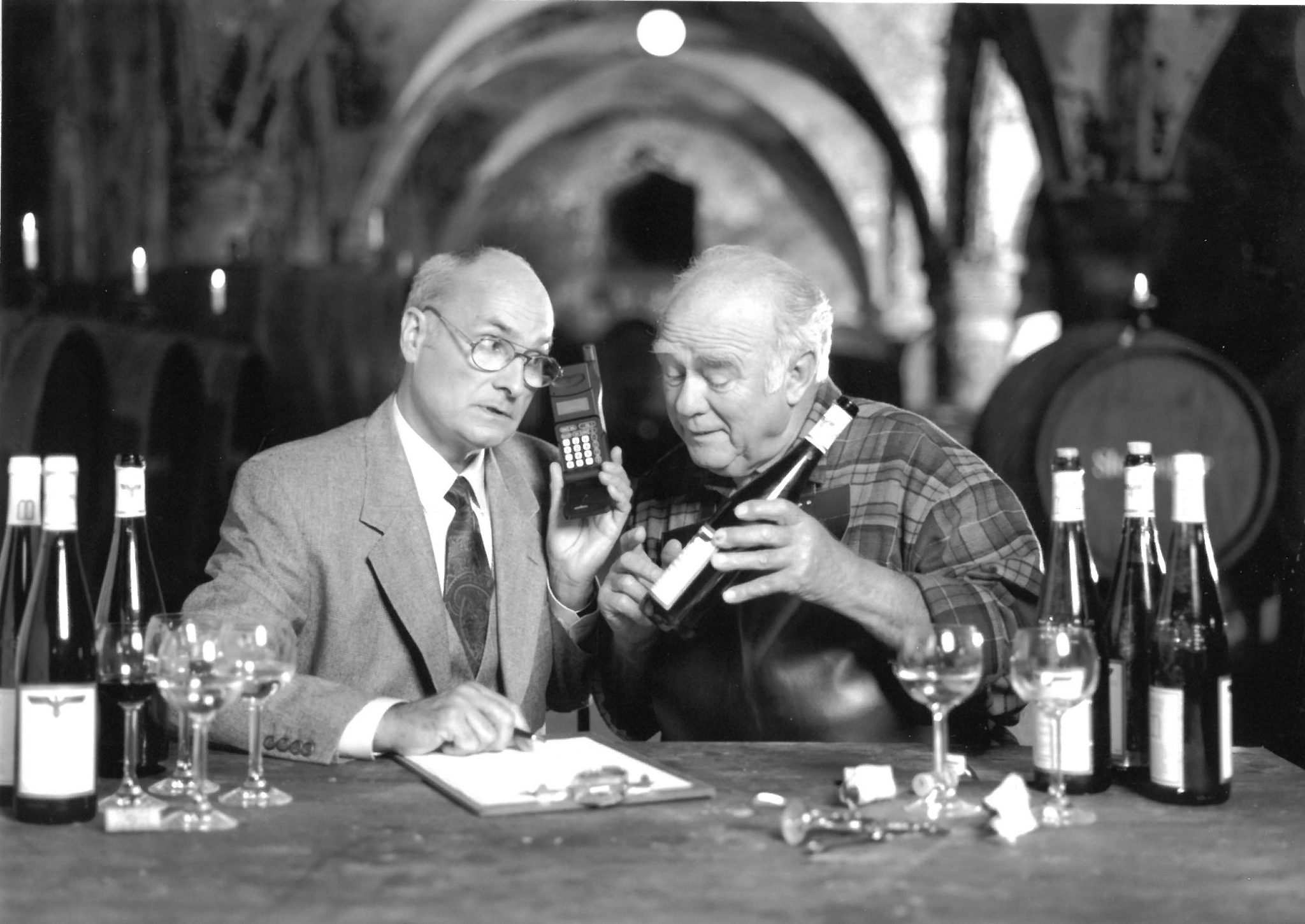 „Reben-Kostbarkeiten werden einem nicht jeden Tag angeboten. Wie wichtig ist da die schnelle Verbindung zum Kunden oder zum Büro zuhause. Aber nicht jede Winzer-Schatzkammer bietet gleich ein Telefon. Mit dem D-Netz-Handtelefon 9109 HA hat man sofort die entscheidende Verbindung. Innerhalb Deutschlands und in Europa. High-Tech auf kleinstem Raum gepaart mit Leistungsstärke und zukunftsweisendem Design.“