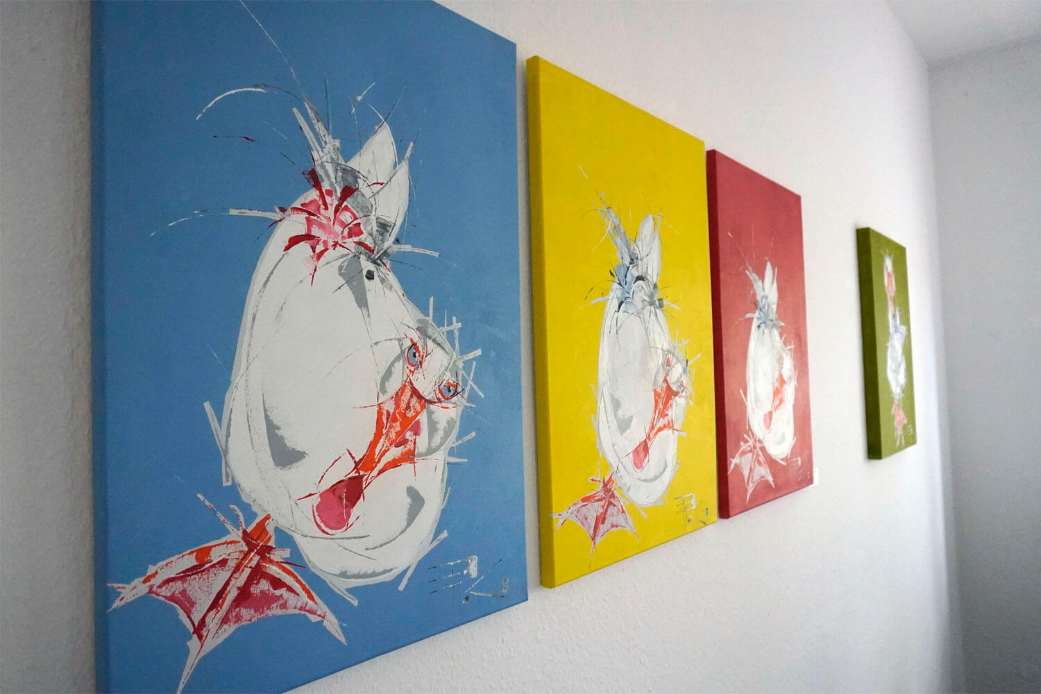 Die Tiroler Künstlerin Patricia Batkowski-Kuderer bespielt ab dem 20. Oktober das Büro von Sympra mit ihren fröhlichen Bildern, meist vergnügliche tierische Begegnungen in den Bergen: mit Steinböcken, Kühen, Schafen und anderem alpinem Getier. Reduziert auf ihre charakteristischen Merkmale, herausgefiltert in vielen Skizzen, auf Leinwand gebannt mit Acryl, gedruckt, gespachtelt oder beides. Oder auf Kleidung gedruckt, jeweils als Einzelanfertigung. Man glaubt, im Sympra-Büro Bergluft zu atmen und in der Ferne Kuhglocken zu hören; blökt da nicht irgendwo ein Schaf …?