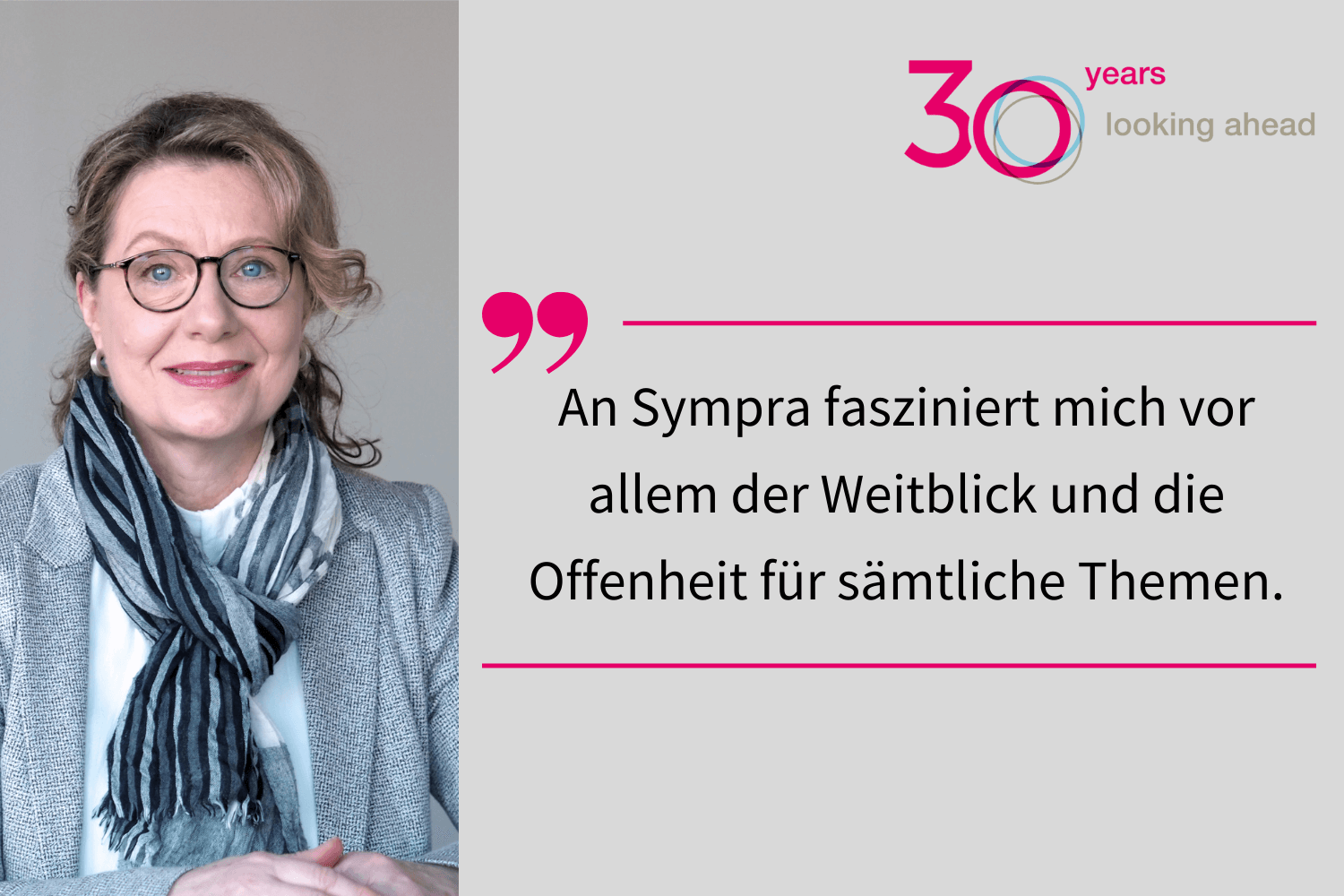 Als ich die schöne Sympra-Villa zum ersten Mal betreten habe, war ich fasziniert von ihrem Charme. Die gute Atmosphäre im Haus war durch und durch spürbar, so dass mir meine innere Stimme von Anfang an sagte: „Hier möchte ich arbeiten“. An Sympra fasziniert mich vor allem der Weitblick und die Offenheit für sämtliche Themen, was u. a. auch durch die wechselnden Kunstausstellungen und internen Projekte zur Nachhaltigkeit zum Ausdruck gebracht wird. Bei der Zusammenarbeit mit dem motivierten Team zeigt es sich, dass die Sympraner:innen über den Tellerrand hinausblicken. Es ist hier möglich, sein Potenzial auszuschöpfen und sich mit seiner Individualität voll einzubringen und zu entfalten. Wertschätzung wird auf diese Weise gelebt. Das zeigt sich auch in dem guten Verhältnis zu den Kunden und deren hoher Zahlungsmoral. Sympra bedeutet für mich außerdem strukturiertes und effektives Arbeiten – was in der Buchhaltung besonders wichtig ist. Aus all diesen Gründen fühle ich mich bei Sympra wohl und bin glücklich darüber, hier zu arbeiten.
