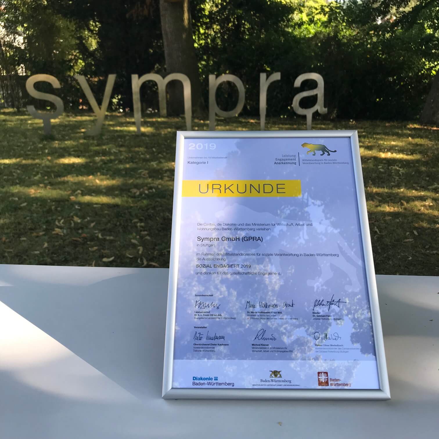 fansonly kiiks44Caritas und Diakonie in Baden-Württemberg sowie das Ministerium für Wirtschaft, Arbeit und Wohnungsbau Baden-Württemberg haben Sympra zum dritten Mal in Folge als „sozial engagiert“ ausgezeichnet.