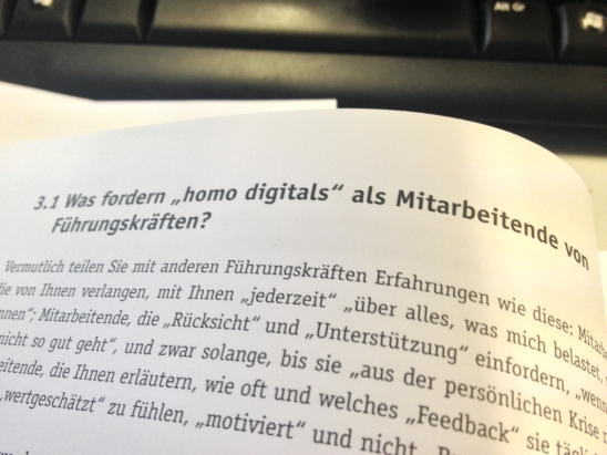 Regina Mahlmann beschreibt in ihrem Kapitel “Führungsalltag mit der Generation Y – eine Grenzziehung tut not!” die Problematik des (Un-)Verständnis, das Führungskräfte den “homo digitals” entgegenbringen, wenn diese mal wieder nach Zuwendung, Anerkennung und Bestätigung eifern. Sie beschreibt, wie Führungskräfte damit umgehen sollten, und welche Möglichkeiten sie haben, die Generation Y trotzdem zu motivieren, aber eben klare Grenzen zu ziehen, was im Unternehmen geht oder eben nicht. Oh, das war ein kurzes Kapitel!