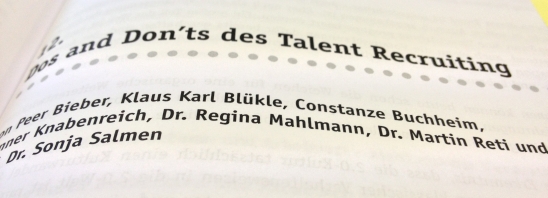 Es folgt ein Sammelkapitel! “Die Dos and Don’ts des Talent Recruiting” fasst noch mal alle Kapitel wunderbar zusammen und kann direkt als Checkliste genommen werden. Mein Lieblings-Don’t: Anfragen nicht oder nur mit Verzögerung beantworten. Das ärgert mich persönlich auch am Meisten! Mehr verrate ich hier nicht 🙂