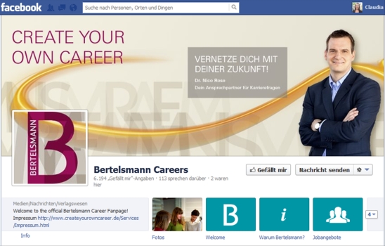 Den Beginn macht Nico Rose, der erläutert, wie bei Bertelsmann mit “Create Your Own Career” als attraktiver Arbeitgeber im Social Web auftritt. Da der Verlag so viele Sparten und damit viele mögliche Stellen hat, ist es für Arbeitssuchende recht schwer, den Verlagsriesen einzuschätzen. Anhand von vielen Beispielen (u.a. von meiner Lieblingszeitschrift Business Punk) erläutert Rose sehr anschaulich, wie Talent Relationship Management bei Bertelsmann funktioniert.