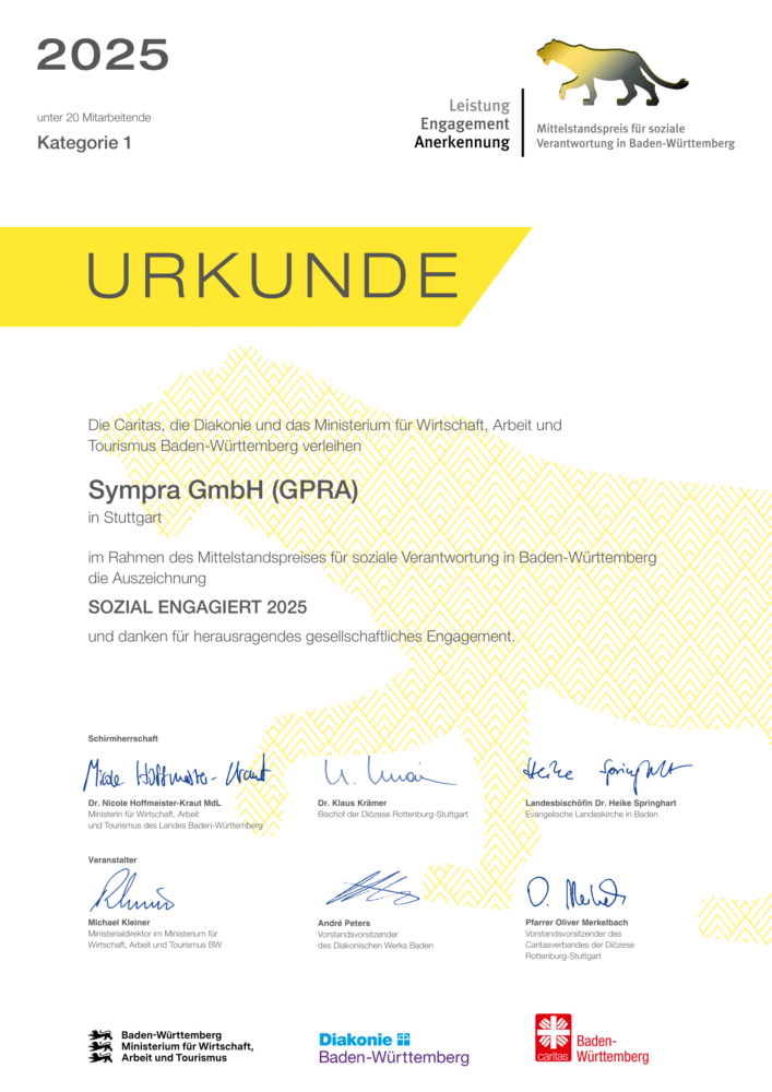 Sympra erneut als „sozial engagiert“ ausgezeichnet